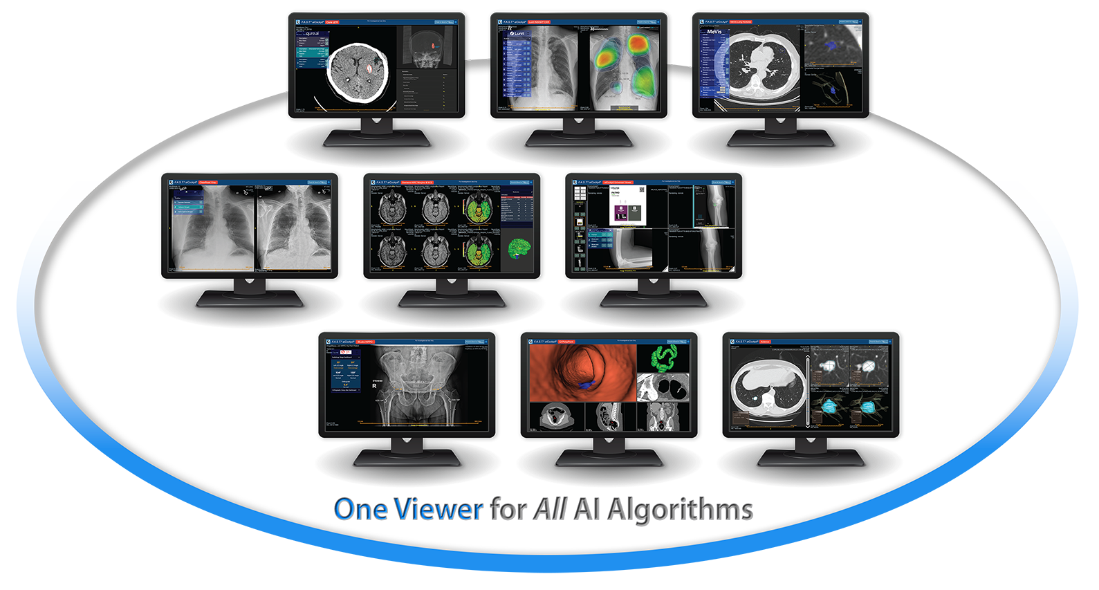 An AI viewer delivering efficient navigation, visualization and interaction with AI results from multiple vendors/algorithms—all via one consistent user experience with fewer overall clicks